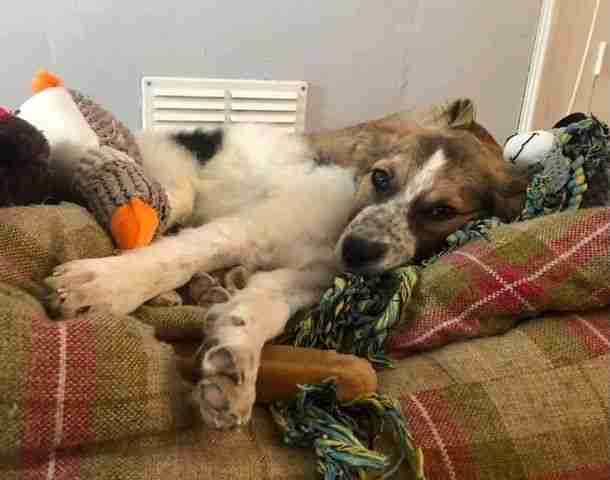 Meet Amos, a 5 month old male Cross-Breed puppy who recently arrived to the U.K. in search of his own loving family. He is an affectionate puppy who loves cuddles and playing with other dogs.