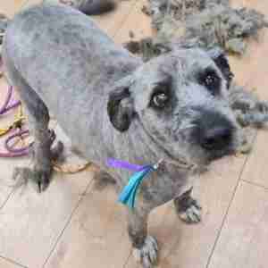 As you can see he has had a nice haircut and feels a lot better for it! He could live with another dog.