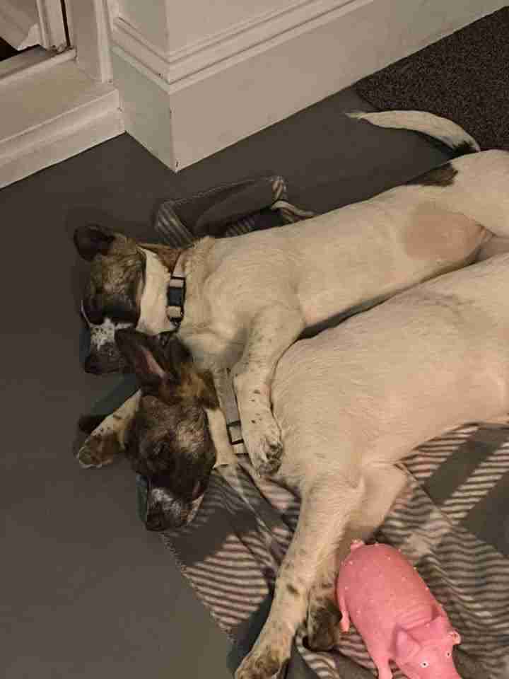 They’re around 9 and a half months old, spayed, vaccinated and chipped. They’re fully house and lead trained and good with people and other dogs. We need a home which can take them both together, as separating them now would be cruel, and unsettle them.
