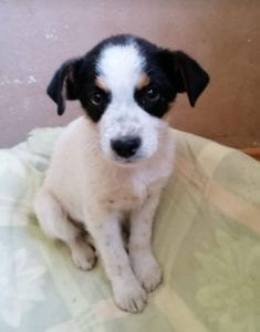 Murray is a 3 month old male Cross-Breed. Poor Murray was found on waste land, by the side of the road. He was alone and terrified and wouldn’t let our volunteer pick him up. She took off her jacket, wrapped it around him and carried him to safety. He was taken a yard until we had space at Happys.