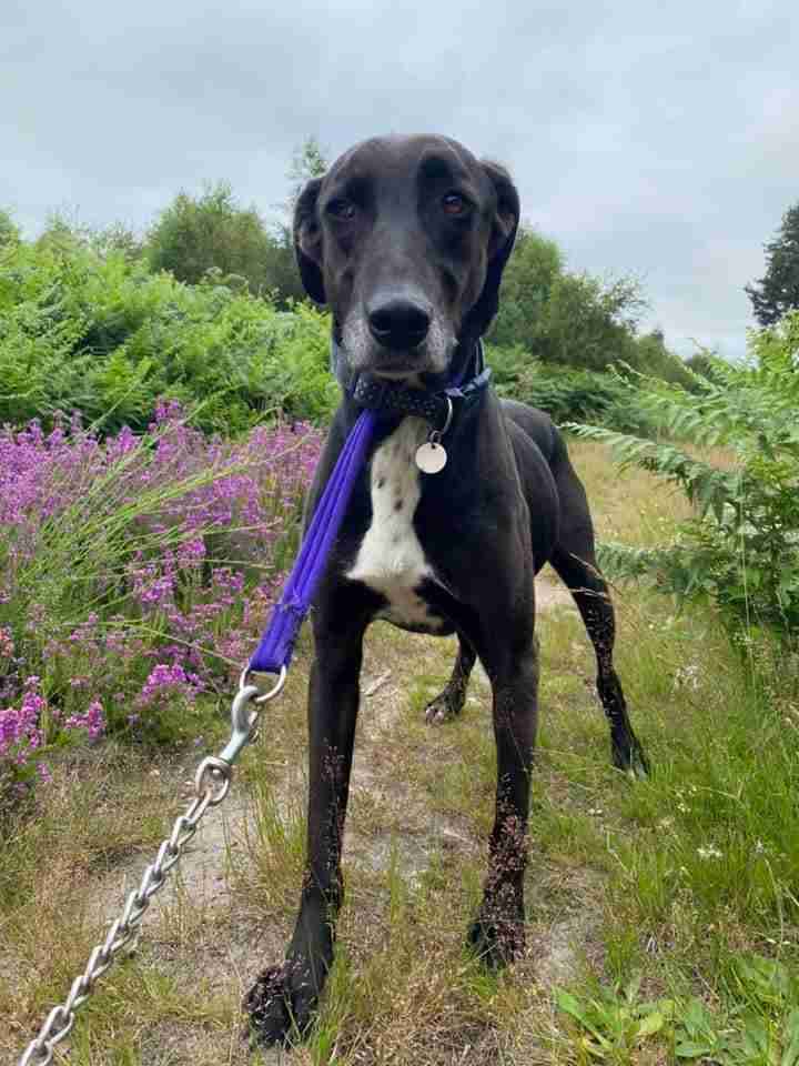 Pluto is a 5 year old male Great Dane cross Greyhound. Pluto came to the UK from Spain in 2018. He initially went to one rescued but was then moved to another rescue shortly after where he stayed for three years. We were recently made aware of him and offered to help as he had not progressed well in a kennel environment.