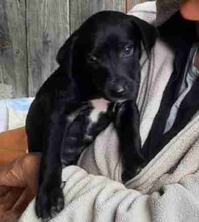 Josie is a 5 month old female Cross-Breed. ?She is a sweet little puppy girl, with a smooth, black coat and white chest, who will grow to medium size when fully grown. Josie is one of a litter of pups that were brought to the shelter when they were very young. Happily, they went straight into foster.