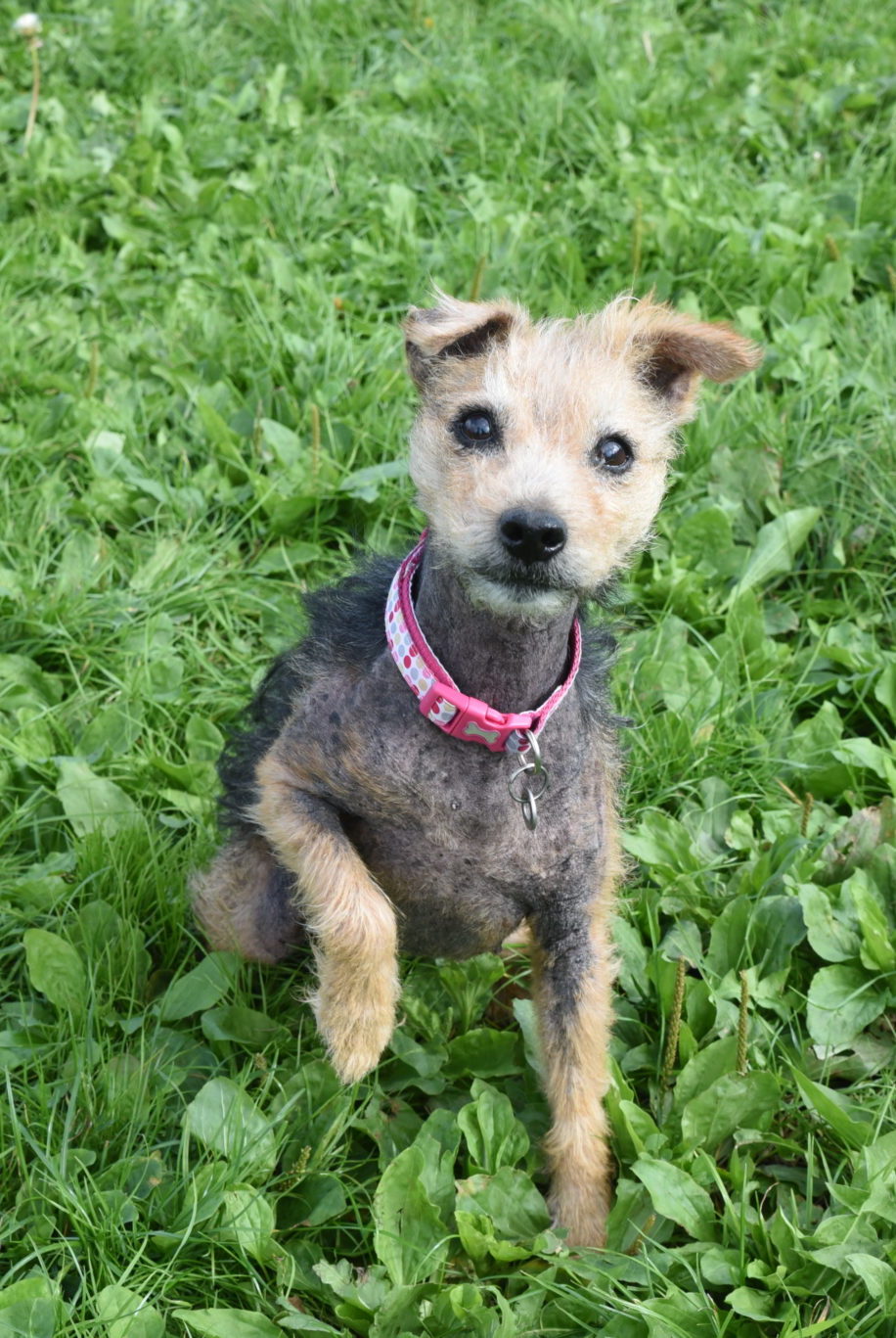 Roxy is a 10 year old female Lakeland Terrier Cross Patterdale. Roxy came into our care due to a change in her owners cirumstances. When she arrived with us she was unfortunately struggling with some skin issues causing a loss of fur. In spite of this, Roxy has shown to be a very friendly, affectionate girl who is full of life, especially for her age! She’s a typical terrier – loves a good game of fetch and gathering all the tennis balls.