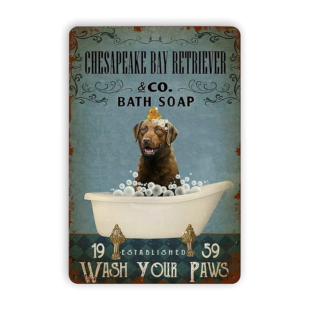 #14 – Chesapeake Bay Retriever Wash Your Paws Metal Tin Signs, Vintage Wall Decor Retro Art Tin Sign Funny Decorations for Home Bar Pub Cafe Farm Room Metal Posters 8×12 Inch